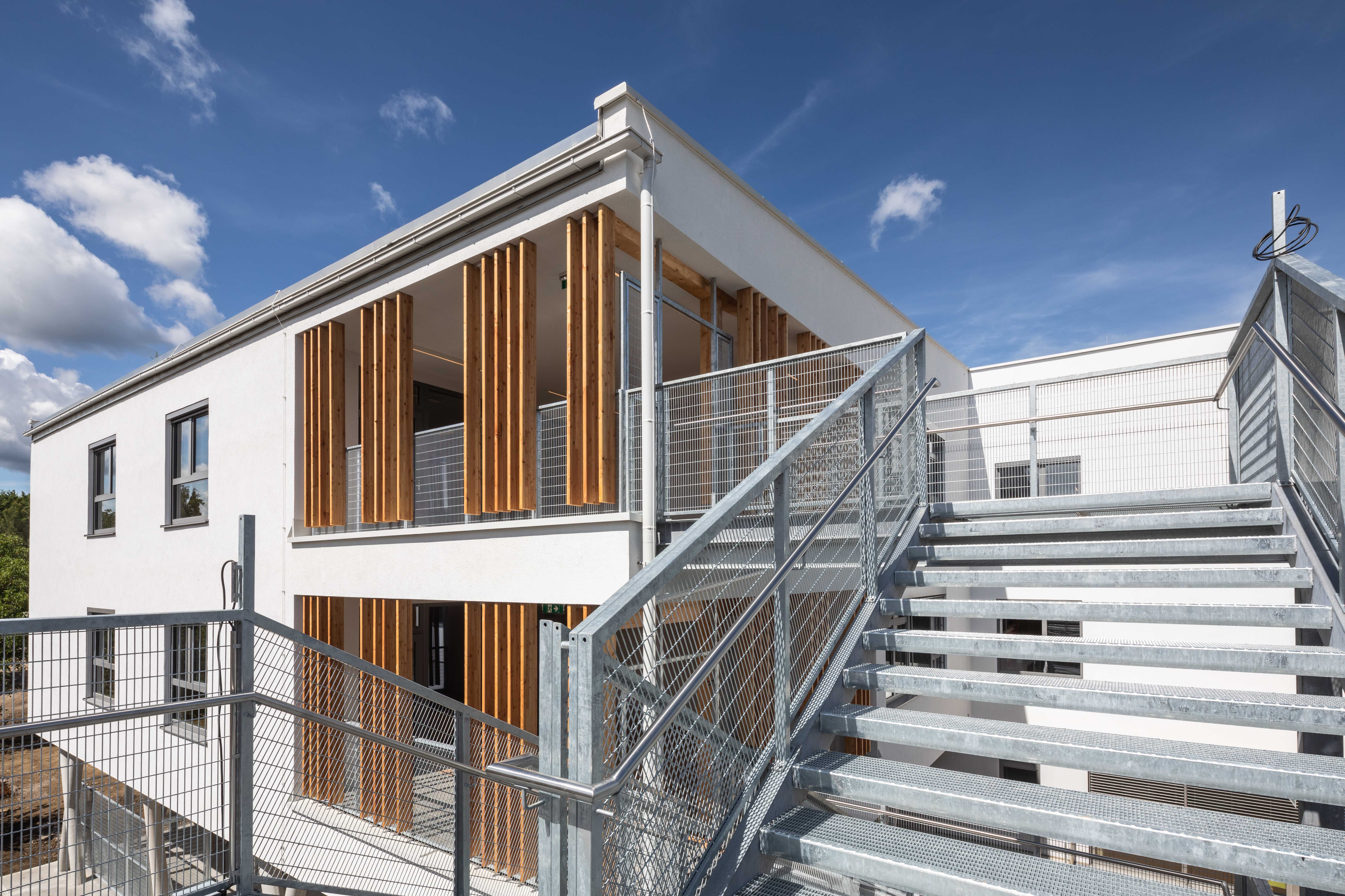 In the annex and the renewed old building attractive and inspiring rooms for contemporary education were established for three kindergarten groups, twelve studying rooms in clusters for the secondary school and a learning area for the senior classes of the grammar school. Rooms for common use and an area for after-school childcare are accommodated on the ground floor apart from the kitchen and the newly designed refectory.